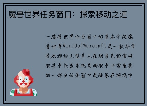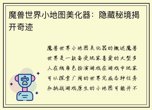 如何在魔兽地图里显示怪物位置 介绍 魔兽地图是一款非常受欢迎的多人在线角色扮演游戏,玩家可以在游戏中与其他玩家一起探索世界、完成任务和战斗怪物。在游戏中,了解怪物的位置对玩家来说非常重要,因为这可以帮助玩家更好地计划自己的行动。本文将介绍如何在魔兽地图里显示怪物位置。九游会·j9官方网...