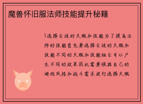 一、部落任务升级的重要性 部落任务升级是魔兽怀旧服中非常重要的一部分,它不仅能够提升角色的等级和能力,还能够获得丰厚的奖励和装备。在游戏中,任务是玩家进行升级的主要途径之一,尤其对于部落玩家来说,任务升级更是必不可少的。 二、选择适合自己的任务 在魔兽怀旧服中,任务种类繁多,玩家可以根据自己的职业和等级选择适合自己的任务。例如,战士可以选择一些需要近战输出的任务,法师可以选择一些需要魔法攻击的任务...